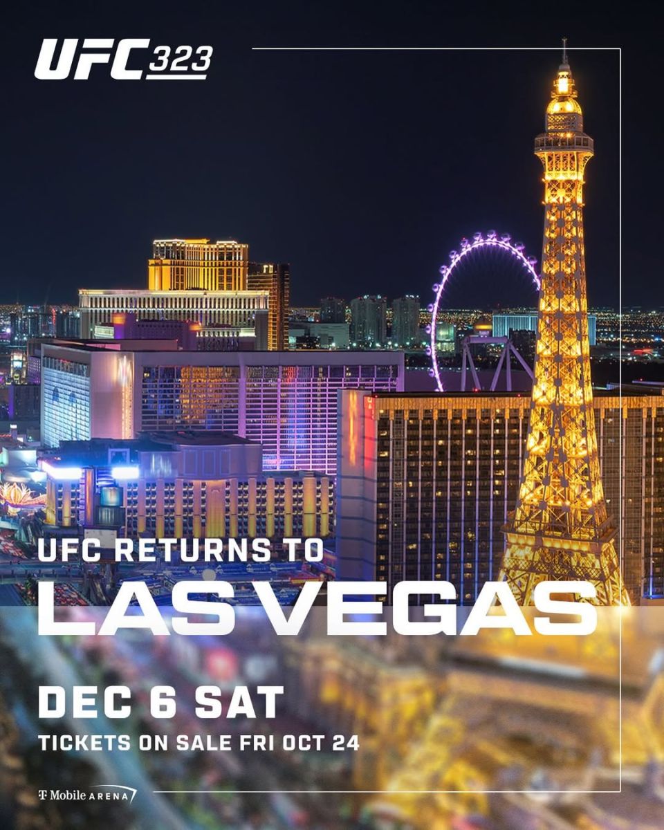 UFC 323 turniri 6 dekabr kuni AQSHning Las-Vegas shahrida o'tkaziladi. Hozircha ushbu turnirning markaziy jangida kimlar oktagonga chiqishi aniq emas.