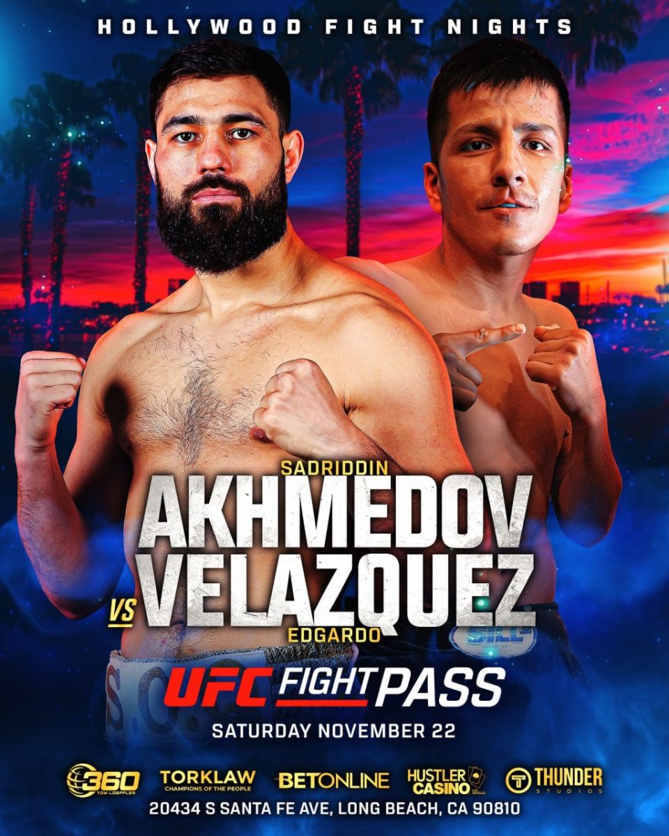 Unda qozog'istonlik 27 yoshli professional bokschi Sadriddin Ahmedov ham ringga chiqadi. Sadriddinga o'sha kuni meksikalik Eduardo Velaskes raqib bo'ladi. Jang super yarim o'rta vazn toifasida 10 raunddan iborat bo'ladi.