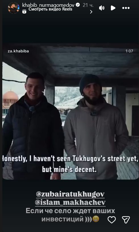 "Agar shunday bo'lsa, qishloq sizning sarmoyangizni kutmoqda", - deb hazil tariqasida yozdi Xabib Nurmagomedov ijtimoiy tarmoqdagi sahifasida.