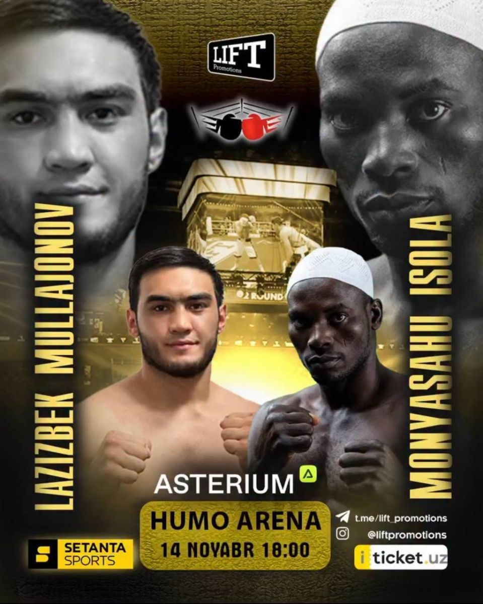 Musobaqa doirasida Olimpiya o'yinlari g'olibi Lazizbek Mullojonov nigeriyalik Monyasahu Muritador bilan, yana bir hamyurtimiz Nurislom Ismoilov esa Tanzaniya vakili Jozef Maigvisya bilan to'qnash keladi.