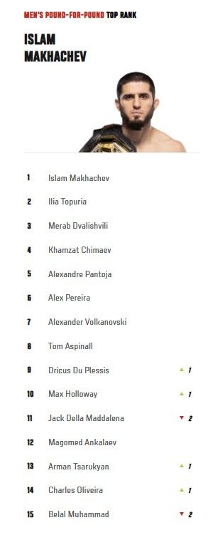 Vazn toifasidan qati nazar tuzilgan reytingda bir necha kun oldin Xukerni mag'lub etgan Arman Carukyan bir pog'ona yuqoriladi va 13-o'ringa joylashdi.