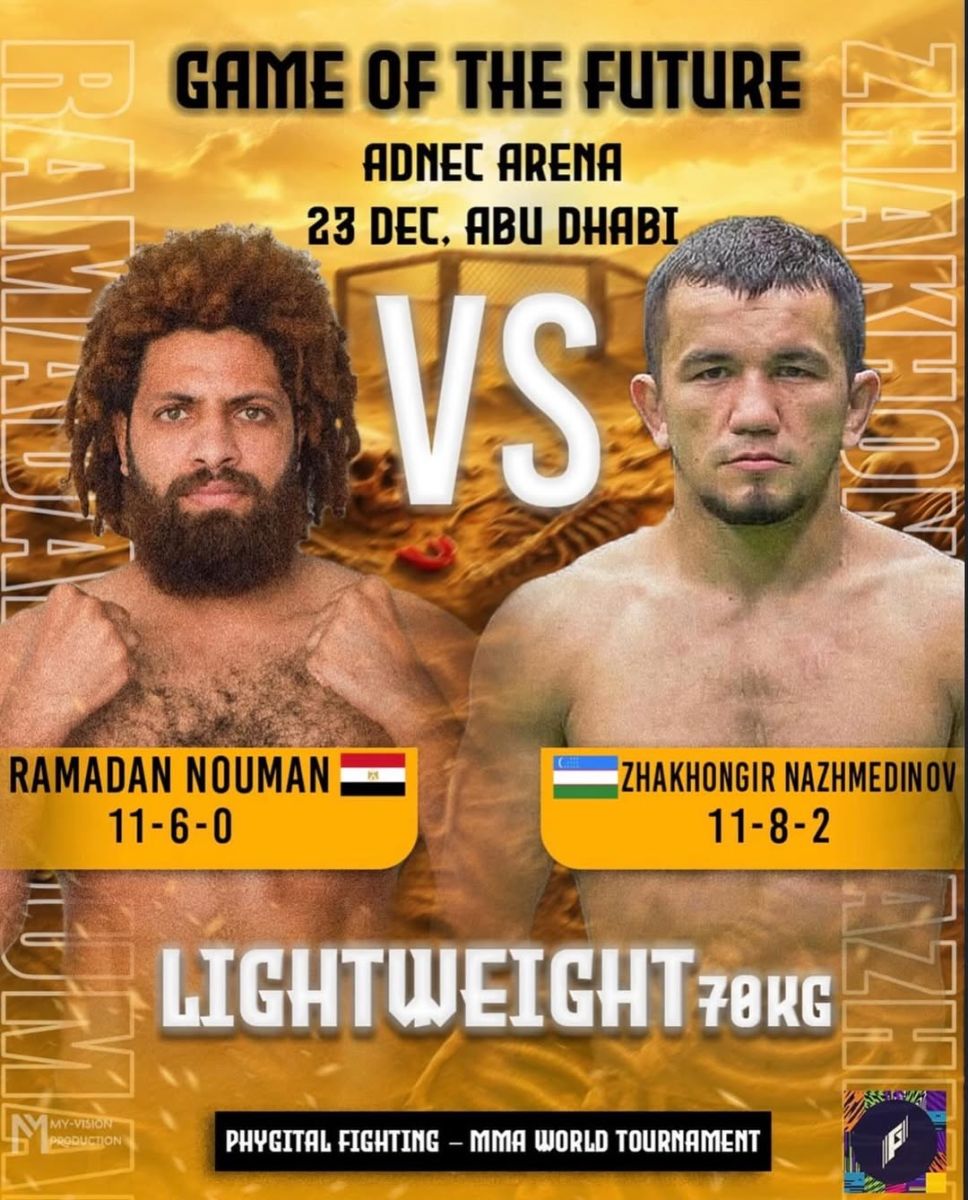 Hamyurtimiz 23 dekabr kuni Birlashgan Arab Amirliklari poytaxti Abu-Dabi shahrida tashkil etiladigan MMA bo'yicha Game of the future turniri doirasida oktagonga chiqadi. O'sha kuni Jahongirga Misr vakili Ramadan Numan raqiblik qiladi.