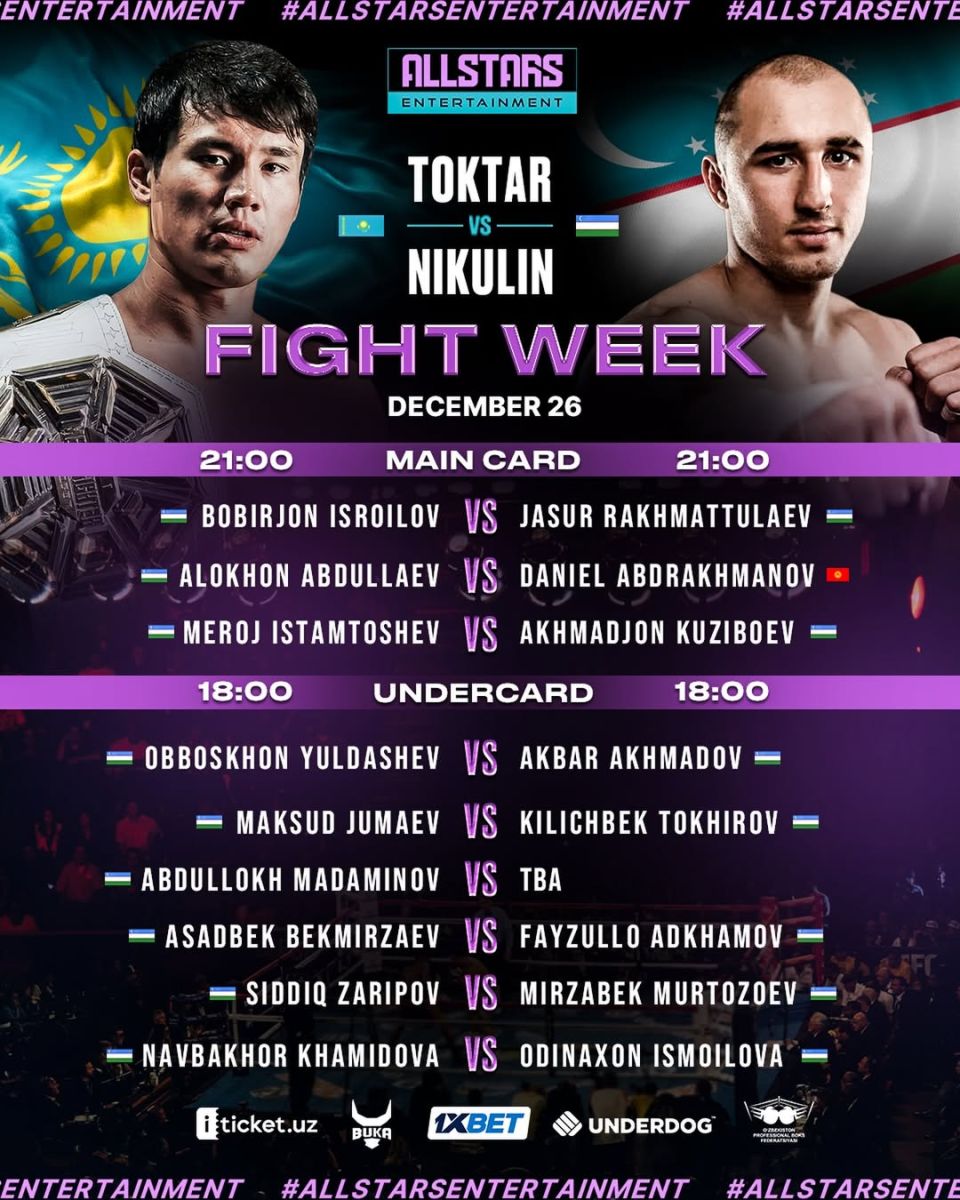 Oqshomning asosiy jangida hamyurtimiz Timur Nikulin Qozog'iston vakili Erkebulan Toktar bilan to'qnash keladi.